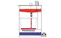 De reactor wordt handmatig of d.m.v. een pomp afgevuld met spoelwater. Het roerwerk wordt d.m.v. de instelbare tijdklok geactiveerd en het vlokkuleringsmiddel Ecostatic wordt gedoseerd. Het roerwerk slaat na 5 a 10 minuten automatisch uit en de scheiding tussen slib en schoon water is tot stand gebracht.